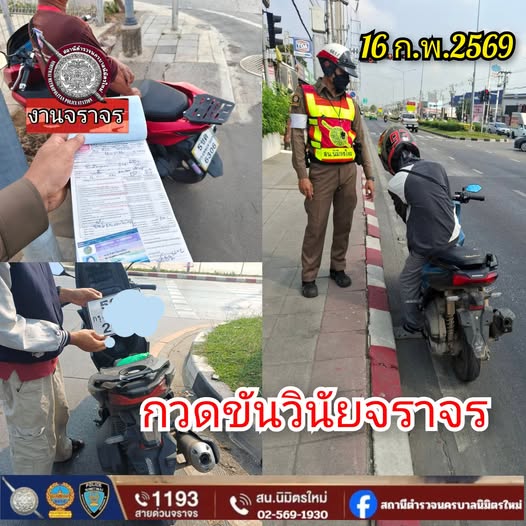 สรุปการปฏิบัติหน้าที่ วันที่ 15-22 ก.พ.69 งานจราจร Leave a Comment / กุมภาพันธ์ 23, 2026 งานจราจร สรุปการปฏิบัติหน้าที่ ประจำวันที่ 15 - 22 กุมภาพันธ์ 2569 เมื่อวันที่ 15 – 22 กุมภาพันธ์ 2569 งานจราจรปฏิบัติหน้าที่รายละดังนี้– กวดขันจับกุมการกระทำผิดกฎหมายว่าด้วยการจราจรทางบก (๑๐ ข้อหาหลัก)– เจ้าหน้าที่ตำรวจจราจรได้มีการอำนวยความสะดวกด้านการจราจร และดูแลความปลอดภัยของประชาชน หน้าสถานศึกษาและจุดบริการต่าง ๆ– เจ้าหน้าที่ตำรวจจราจรได้มีการอำนวยความสะดวกด้านการจราจร และดูแลความปลอดภัยของประชาชนที่ข้ามถนนบริเวณหน้าห้างสรรพสินค้า ในช่วงเวลาเร่งด่วน และมีปริมาณรถหนาแน่น– ประชาชนขอความช่วยเหลือ– อบรมให้ความรู้ตาม โครงการขับขี่ปลอดภัย สร้างวินัยจราจร และ ให้ความรู้ เกี่ยวกับสัญญาณจราจรเบื้องต้น#แจ้ง_02_569_1930 งานจราจร ประชาสัมพันธ์ผลการปฏิบัติหน้าที่ ประจำวันที่ 15 - 22 กุมภาพันธ์ 2569 สรุปการปฏิบัติหน้าที่ วันที่ 15-22 ก.พ.69 งานจราจร Read More »